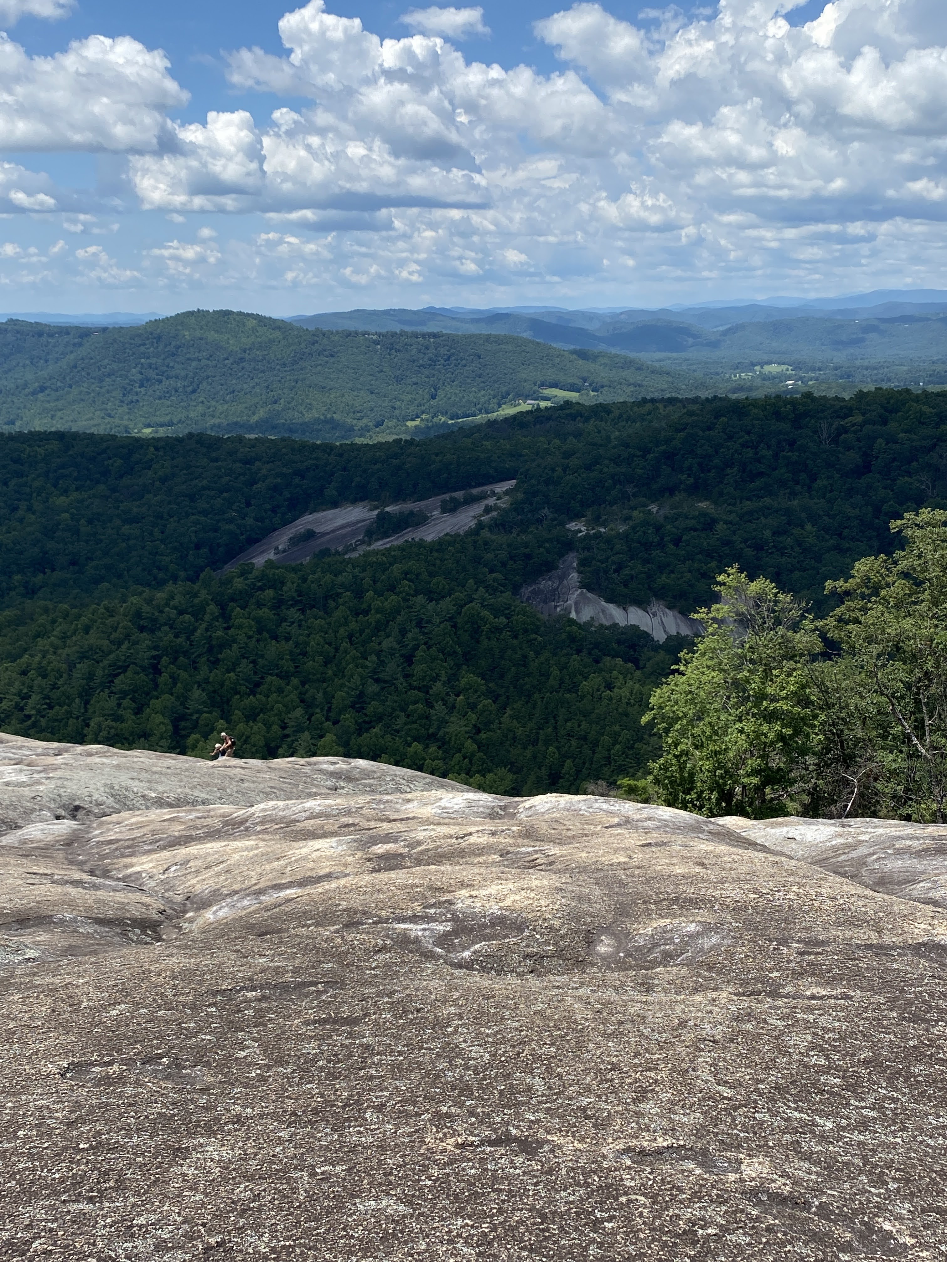 Starting off there were plenty of people on the same path because the beginning segment eventually lead to the different trails the park has to offer. Even in the beginning, I was pleased by the greenery and the well marked paths. It quickly became my favorite place for hiking and I hadn’t gotten to the best part yet! So the beginning phase of our hiking experience was overall leveled but about 1/4 of the way through the incline began to kick in. We stopped a couple times. We watched hawks windsurf and got to observe a bold, unbothered doe. As well as a single dark heavy cloud. Shakira asked “What does being in the mountains do for you?”. I like nature in general so whether I’m in the mountains, meadow, near the lake, or on the beach, I am very much happy and calm and content. She had a stronger preference for the beach over the mountains since being in the mountains makes her anxious. After reaching the top of Stone Mountain, we thought that was all there was to see, so on the descent, we increased the pace. We reached a parking lot and felt a sense of accomplishment only to realize it wasn’t the parking lot we left our car at. It was the lower parking lot. And we were only halfway done.