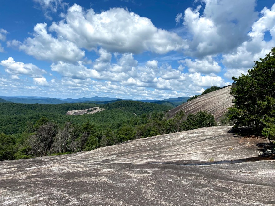 So, the gang met up at my place around 10 o’clock in the morning. I wanted to wear regular sneakers for the hike but something told me to get my hiking boots. Unfortunately, I went against my better judgment. The trip was about an hour and 30 minutes southwest from my home. I thoroughly enjoy drives under four hours – especially with loved ones. Anything longer than four hours tends to hurt my back. This was our first time going to Stone Mountain State Park in North Carolina. I believe there are a few parks with the same name on the East Coast. People usually think I’m referring to the one in Georgia, so I’ll have to check that out next! When we arrived, the visitors center was closed due to COVID-19. We grabbed a map and drove over to the trail entry at the upper trail parking lot. The longest loop trail was 4 1/2 miles and that was also marked as strenuous. There was no telling when we’d be back this way, so I urged the group to do the longest trail which I thought would also be the most rewarding. And they agreed!