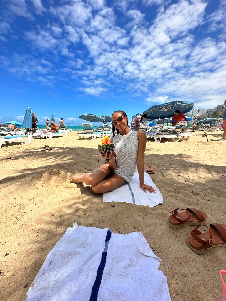 We arrived at Éter Rooftop and… of course, we took an elevator. As we exited, we heard a banging on the one next to us. We later discovered someone was stuck in the elevator! If I ever come back, I will never take an elevator in Puerto Rico because I don’t have time to experience these fears. That’s not the thrill I’m seeking. I know I shouldn’t generalize… but I’d rather that than risk my sanity (forgive me). We ordered drinks. Service was slow, but the view was gorgeous. Once I received it, the garnishment was missing… My drink was naked and room temp lol. Despite my sad cocktail, our waitress was working hard and deserved a tip. We finished our drinks and took more pictures. The girls took the elevator down and I took the stairs because I refuse to be stranded in a metal container while on vacation. A shower was had and sleep followed promptly after because I was beat.