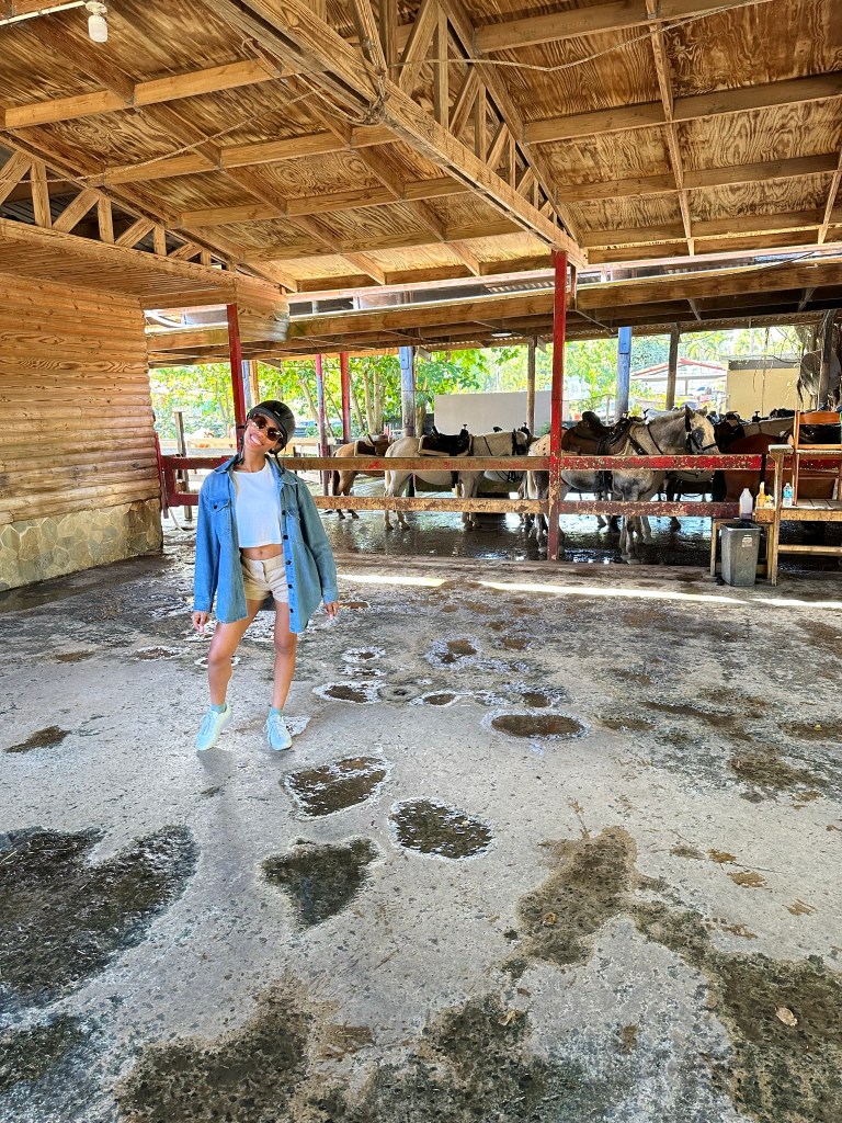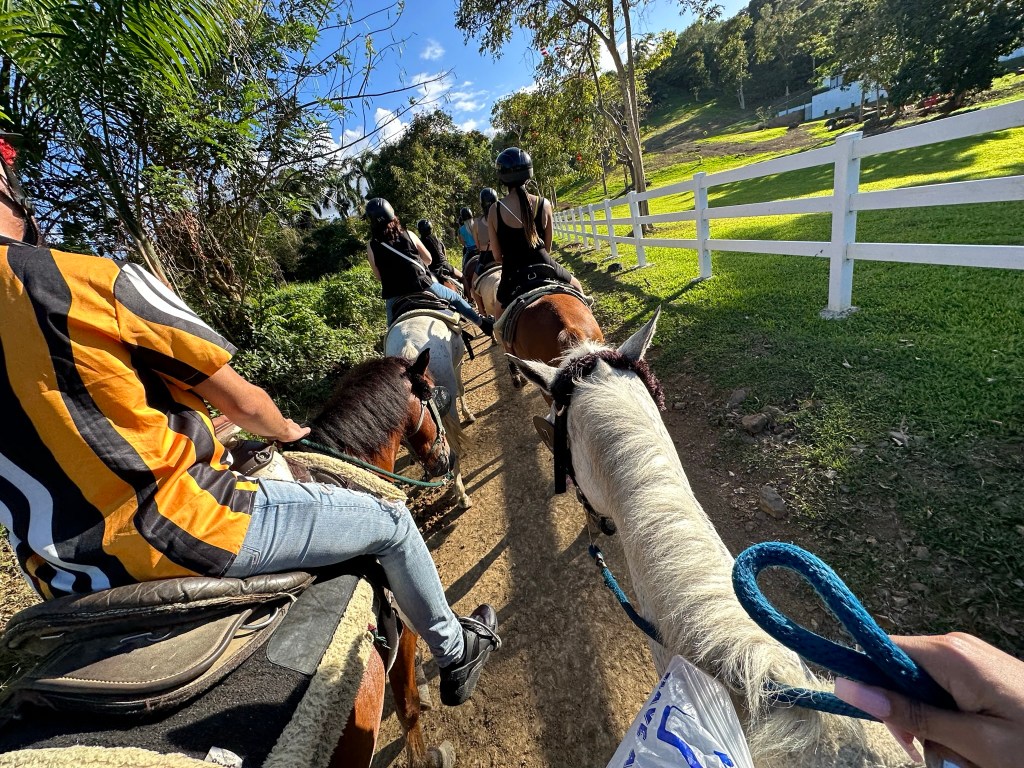 Next up was horseback riding! It was about an hour’s drive to Carabalí Rainforest Park. The music was bumpin’, and the servers were hustlin’ and busin’ tables. The energy was high! We waited a little while before our group was called. I had a horse named Sandy, and she had a lot of… personality. I was worried at first, but we ended up being a match. We didn’t actually go into the rainforest, but we did get to see it. I was disappointed because the title of the tour was misleading. Nevertheless, I had a good time and it was pretty chill! We didn’t get to trot, gallop or go through water but the scenery was pleasant. Truth be told, I was over it after 30 minutes.