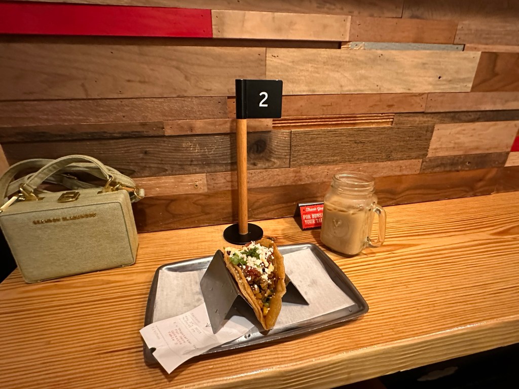 After my nap, I figured it’d be a good idea to put something on my stomach before it got too late. There was still some light in the sky so decided to look for something close by. I was a few minutes walk away from a café called Foxy Loxy. I ordered a single vegetable taco. It was tasty (though greasy) and I regretted not ordering another. Something new I tried: a horchata latte. It had espresso in it; an interesting twist I don’t care to experience a second time.